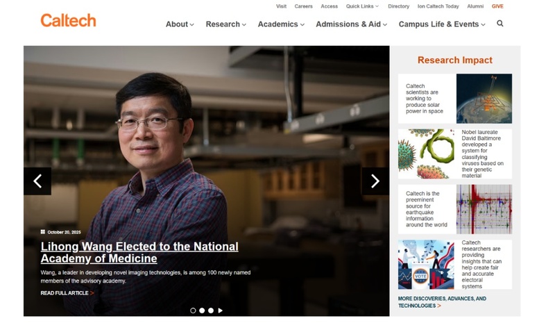 图:加州理工学院官网首页刊登汪教授当选美国医学院院士的新闻 汪立宏教授是生物医学成像领域的公认领军者。其团队开发了多种成像技术,包括光声成像以及压缩超快成像技术——该技术造就全球最快相机,目前可实现每秒210万亿帧的拍摄速度。 在其众多荣誉中,汪立宏教授曾获美国国家科学基金会(NSF)CAREER奖、美国国立卫生研究院(NIH)FIRST奖、主任先锋奖、主任变革性研究奖、美国国立卫生研究院(NIH)和美国癌症研究所(NCI)共同颁发的杰出研究员奖,还获得美国光学学会(OSA)Michael S. Feld生物光子学奖、C. E. K. Mees奖章、国际电气与电子工程师协会(IEEE)技术成就奖、生物医学工程奖、国际光学工程学会(SPIE)Britton Chance生物医学光学奖、国际光声和光热协会(IPPA)颁发的高级奖等等。 汪教授是美国科学促进会、美国医学与生物工程院、电磁学学会、国际医学与生物工程院、IEEE、OSA和SPIE会士,中国光学学会外籍会士,瑞典隆德大学授予其荣誉博士学位,2018年当选美国国家工程院院士,2020年当选美国国家发明家学院院士,2024年《生物医学光学杂志》(Journal of Biomedical Optics)为其推出特刊,2025年当选美国国家医学院院士。 |